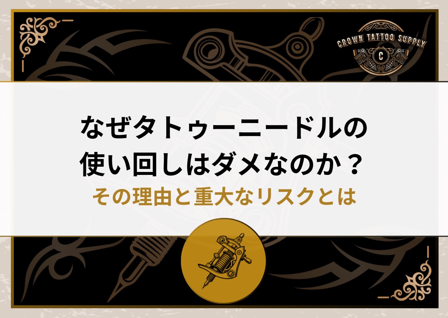 タトゥー施術で使用される「ニードル(針)」は、1回使ったら必ず廃棄する“使い捨て”が基本です。しかし中には、「もったいない」「消毒すれば使えるのでは?」と考えてしまう方もいるかもしれません。ですが、ニードルの使い回しは絶対にやってはいけない行為です。この記事では、その明確な理由と隠れたリスクについて詳しく解説します。