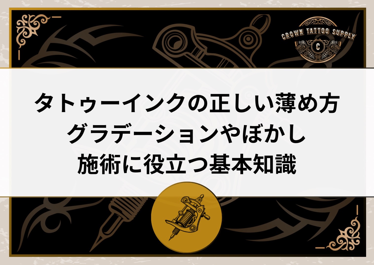 インクの薄め方をマスターすることで、より繊細で美しいタトゥー表現が可能になります。特にぼかしやグラデーション施術を行う方は、濃度調整を練習し、自分のスタイルに合わせた色作りをしてみてください。