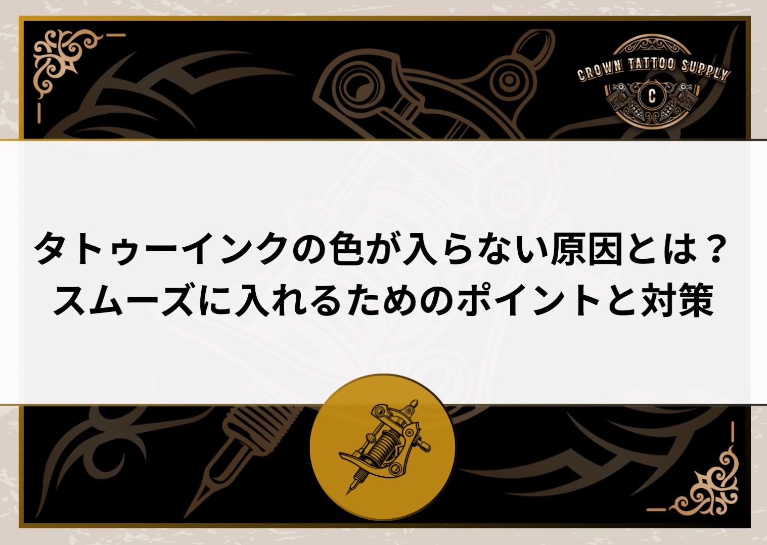 タトゥーインクが色が入らない場合は針の深さ・電圧・インクの状態・肌の状態を見直すことが重要です。少しの調整で色の入りや仕上がりが大きく変わるため、原因を一つずつ確認しながら対応することでスムーズな施術が可能になります。
